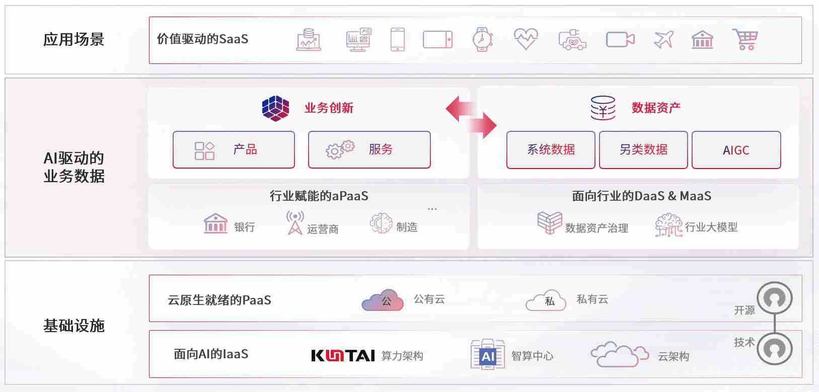 数字时代,,,,围绕企业数字化转型的关键要素,,,,z6com尊龙凯时数码开创性的提出数云融合战略和技术体系框架,,着力在云原生、、、、数字原生、、AI原生和信创产业上架构产品和服务能力,,,为处在不同数字化转型阶段的快消零售、、、汽车、、金融、、医疗、、政企、、、教育、、、运营商等行业客户提供泛在的敏捷IT能力和融合的数据驱动能力,,,构建跨界融合创新的数字业务场景和新业务模式,,助力企业级客户建立面向未来的核心能力和竞争优势,,全面推动社会的数字化、、、、智能化转型升级。。。。